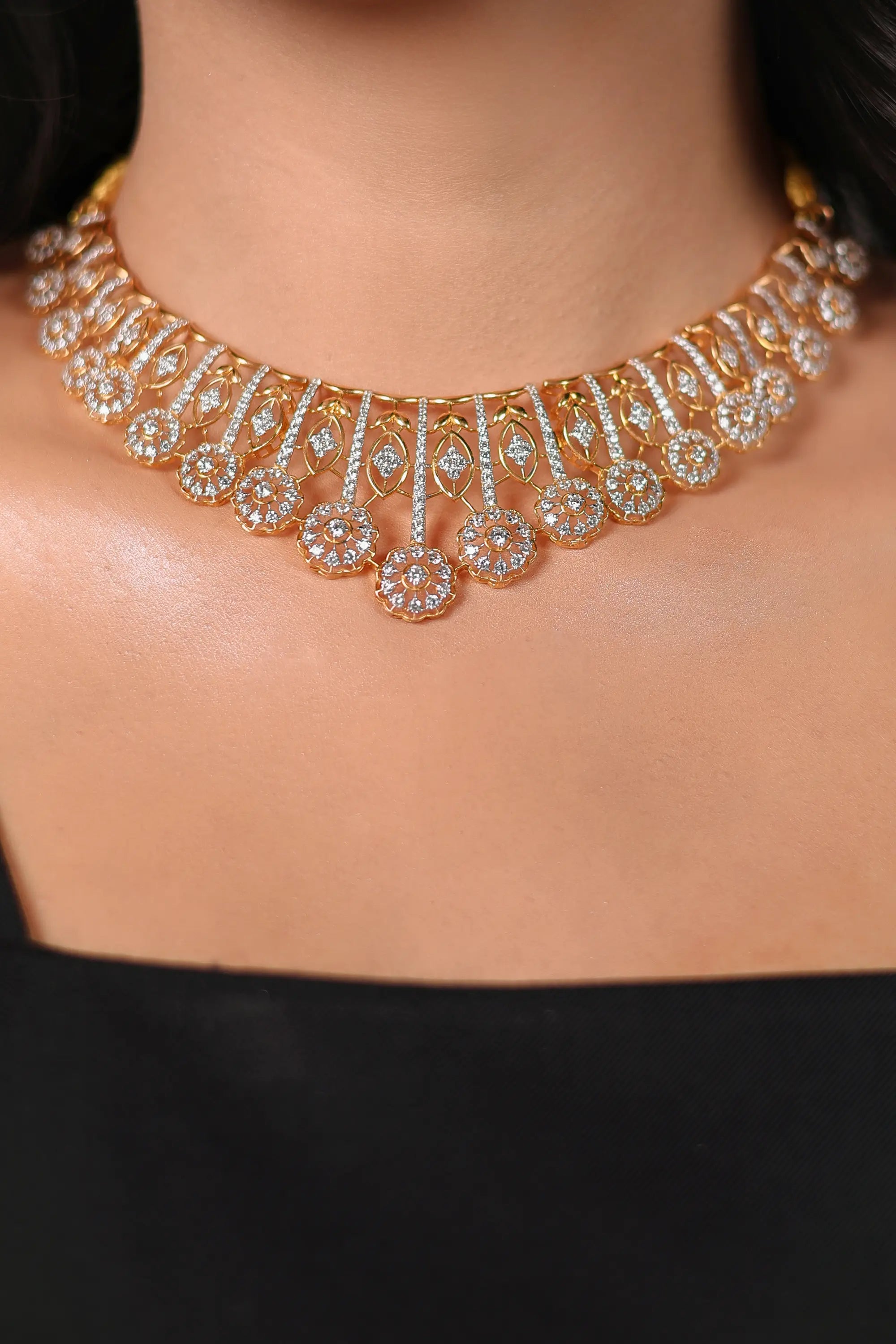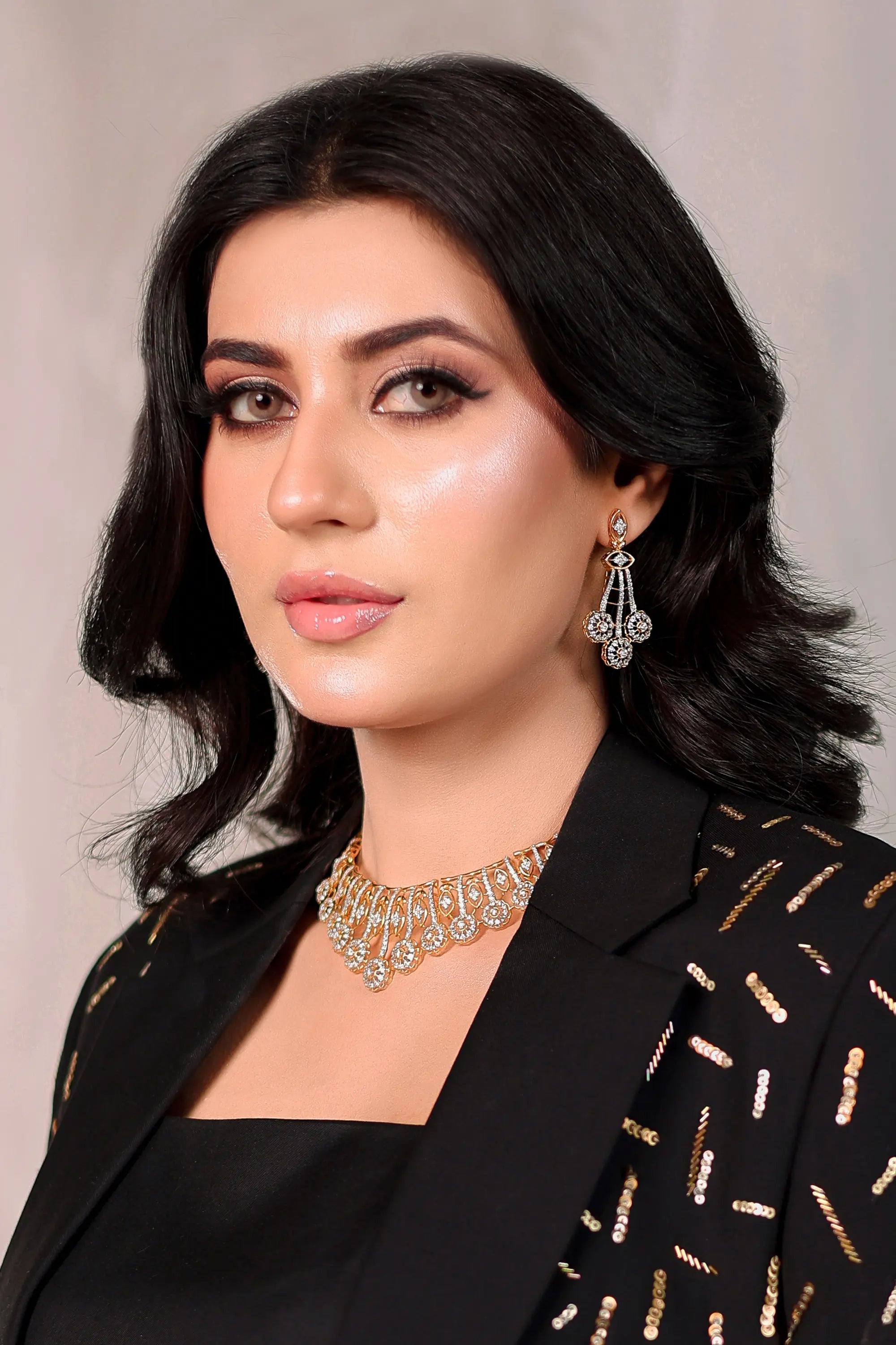 Delicately radiant and endlessly graceful, the Fioré Jewellery Set from Asim Qayyum Jewellers’ Diamora Collection captures the poetry of nature in pure luxury form. Handcrafted in Gujranwala, Pakistan, this exquisite set blossoms with petal-inspired motifs, shimmering crystals, and a luminous gold-polished finish that reflects timeless artistry.