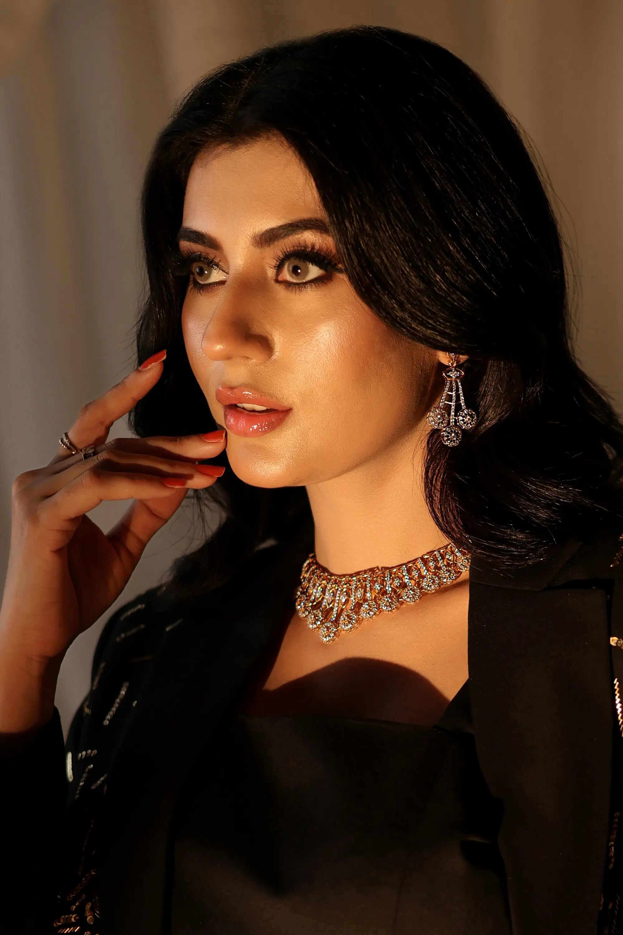 Every detail — from the sculpted necklace to the finely balanced earrings and rings — embodies sophistication, femininity, and perfection. Designed for modern brides and elegant soirées alike, Fioré celebrates the beauty of Pakistani craftsmanship wrapped in a world-class luxury aesthetic.