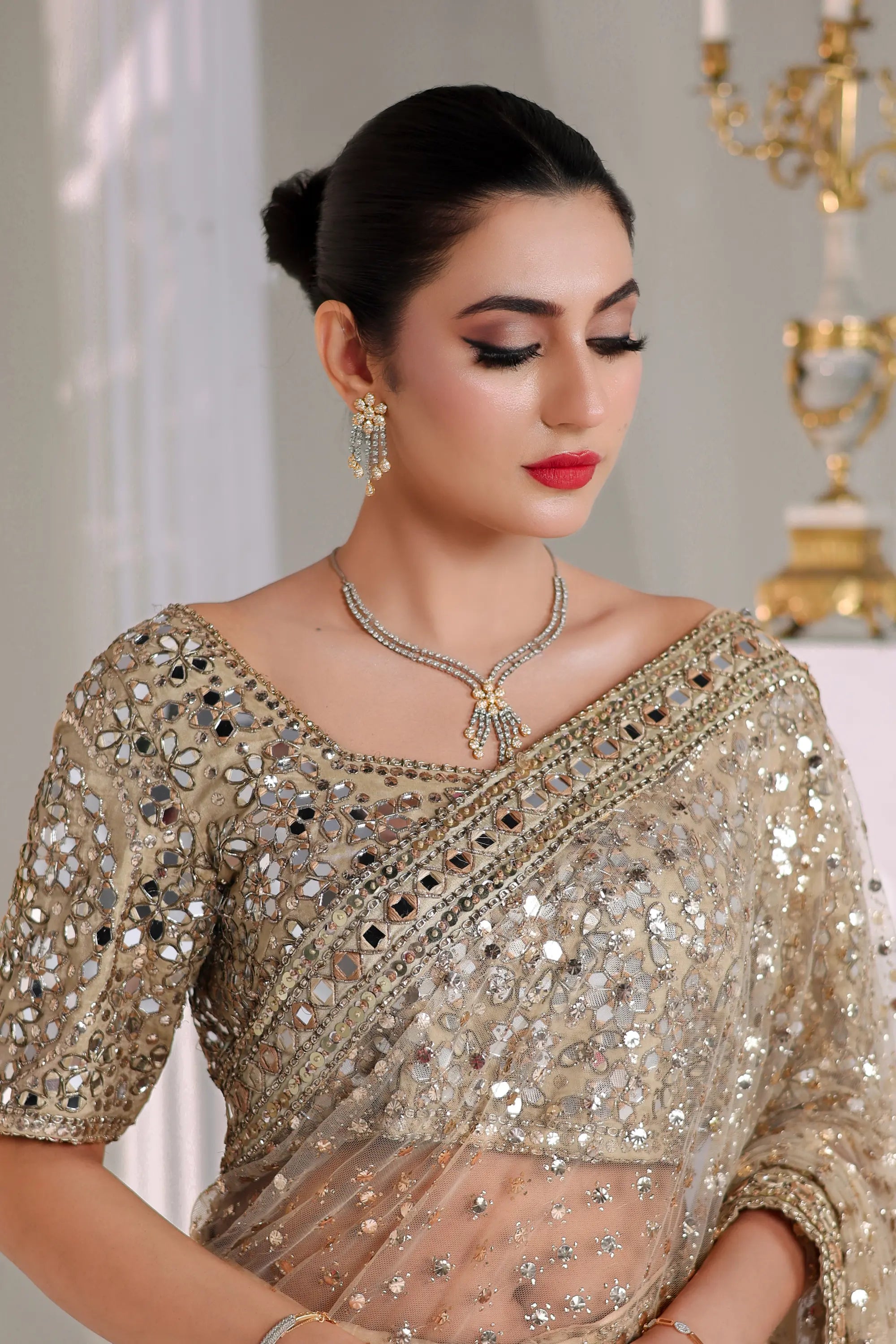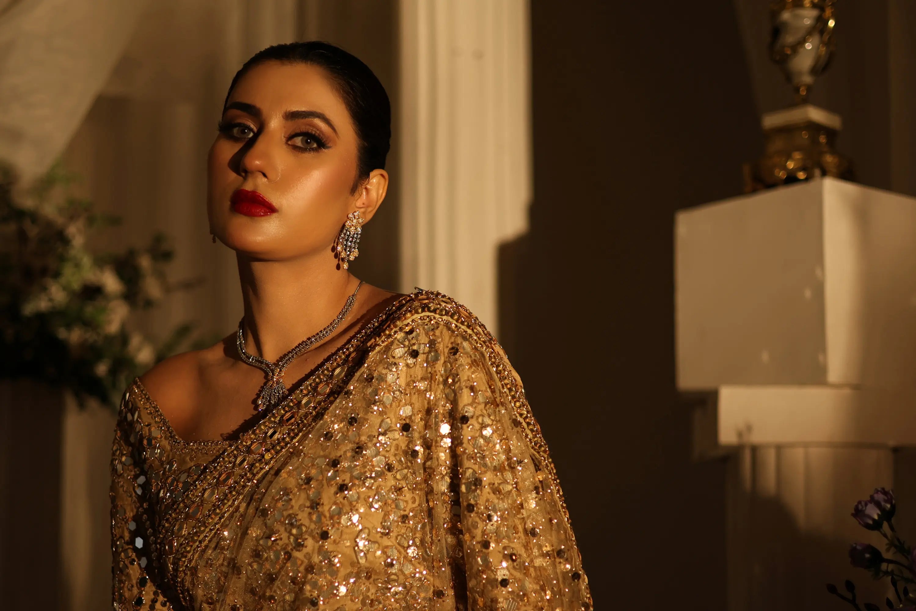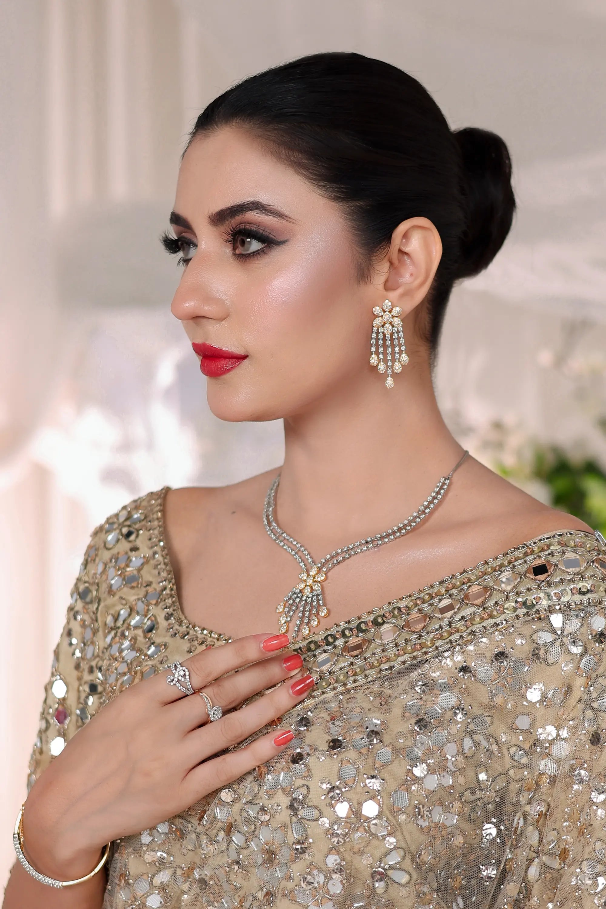 Every detail reflects balance and beauty: the refined necklace, elegant earrings, and delicately crafted rings radiate charm for both modern and traditional ensembles. Whether for bridal celebrations or evening elegance, Serena captures the timeless allure of Pakistani craftsmanship with a global touch.